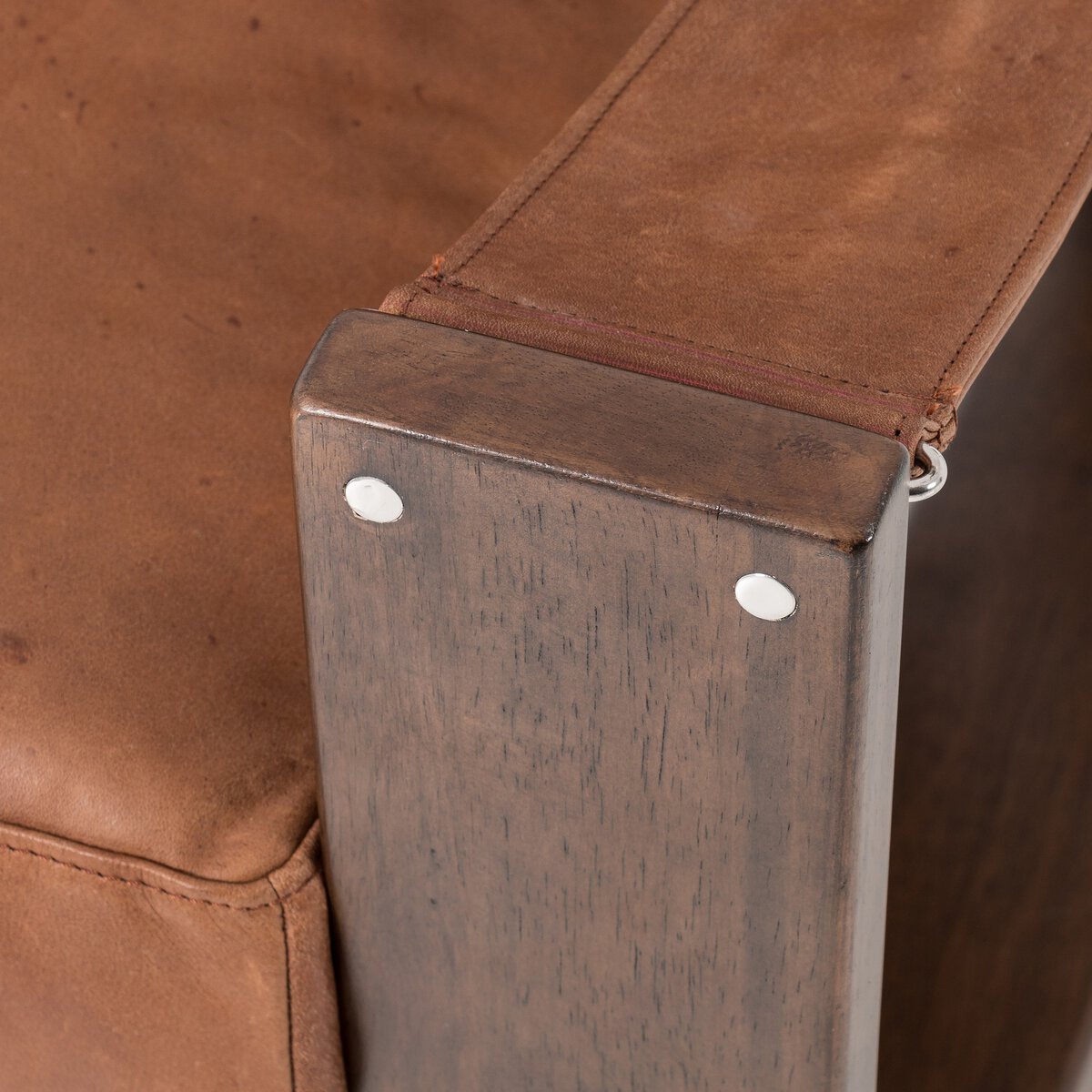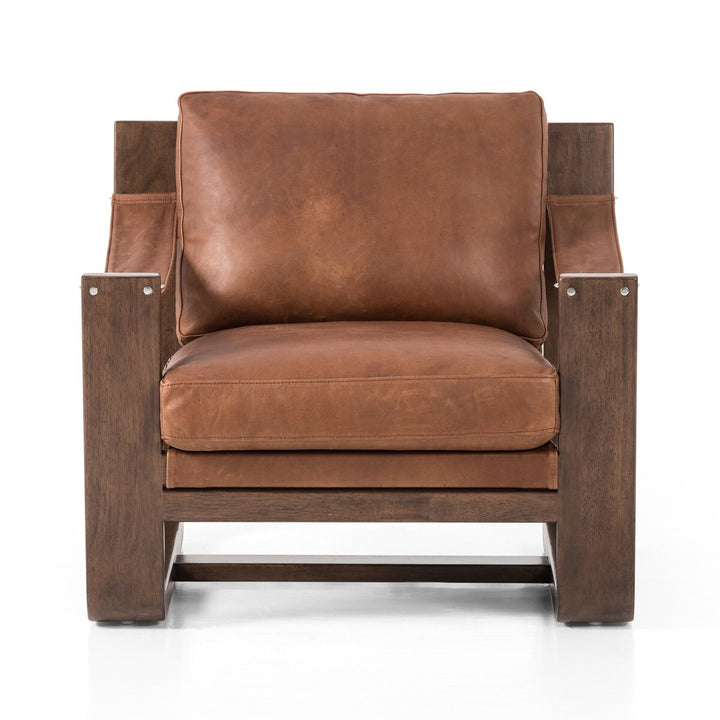 The classic sling chair gets a grand, elevated look. Solid wood frame is shaped, curved and smoothed on all edges. Cushioned seat and back are upholstered in black top-grain leather. Sourced from one of the oldest family-owned tanneries in Italy’s Bassano del Grappa, heirloom leather is salvaged and processed from upcycled hides featuring an abundance of natural markings, scars and color variations. The result? Beautifully supple, buttery soft hides with an unmatched depth of color and richness, and an authentic lived-in look.