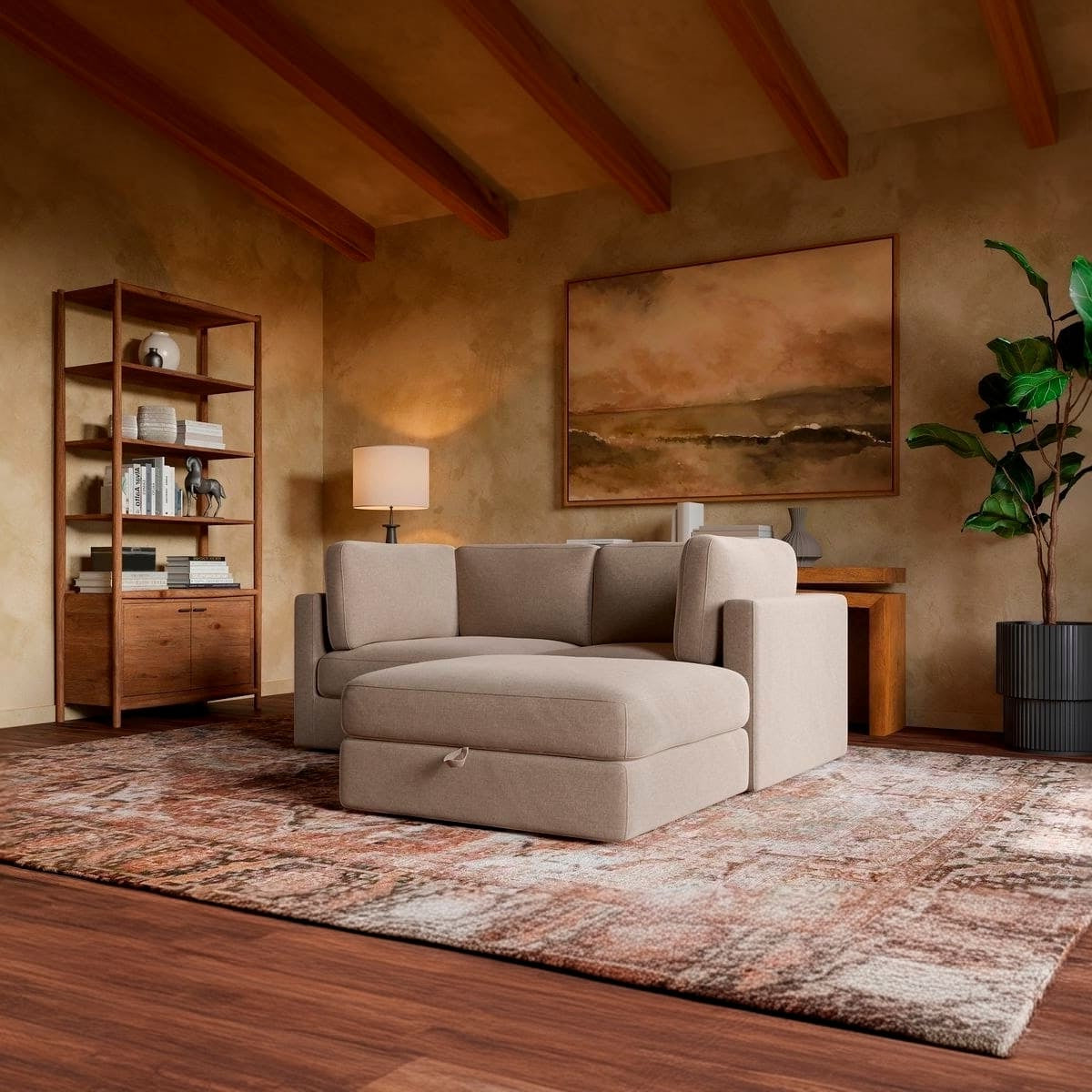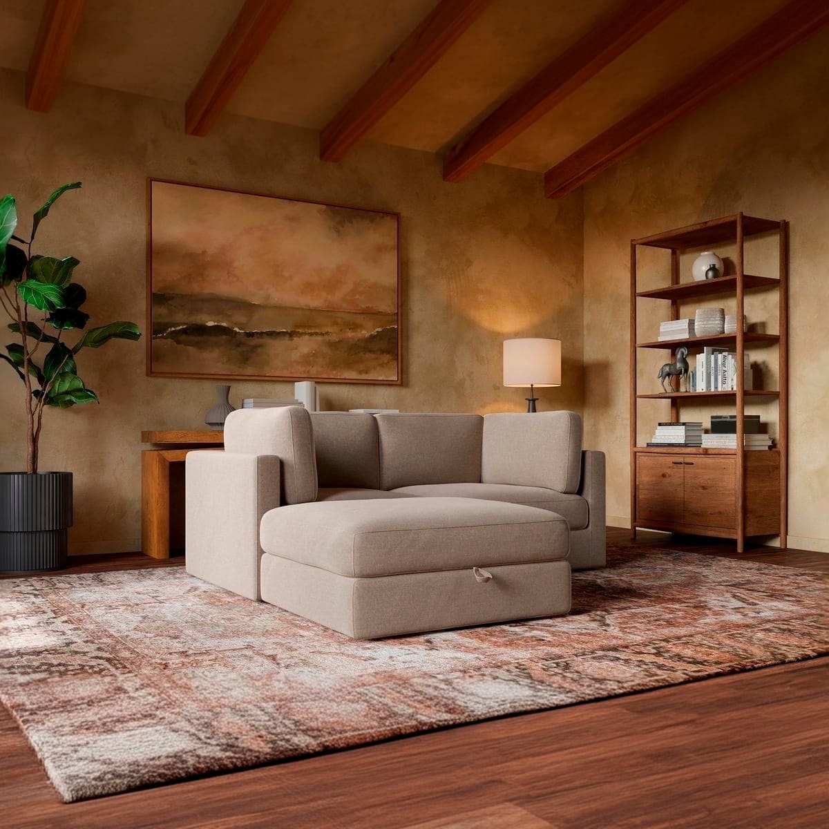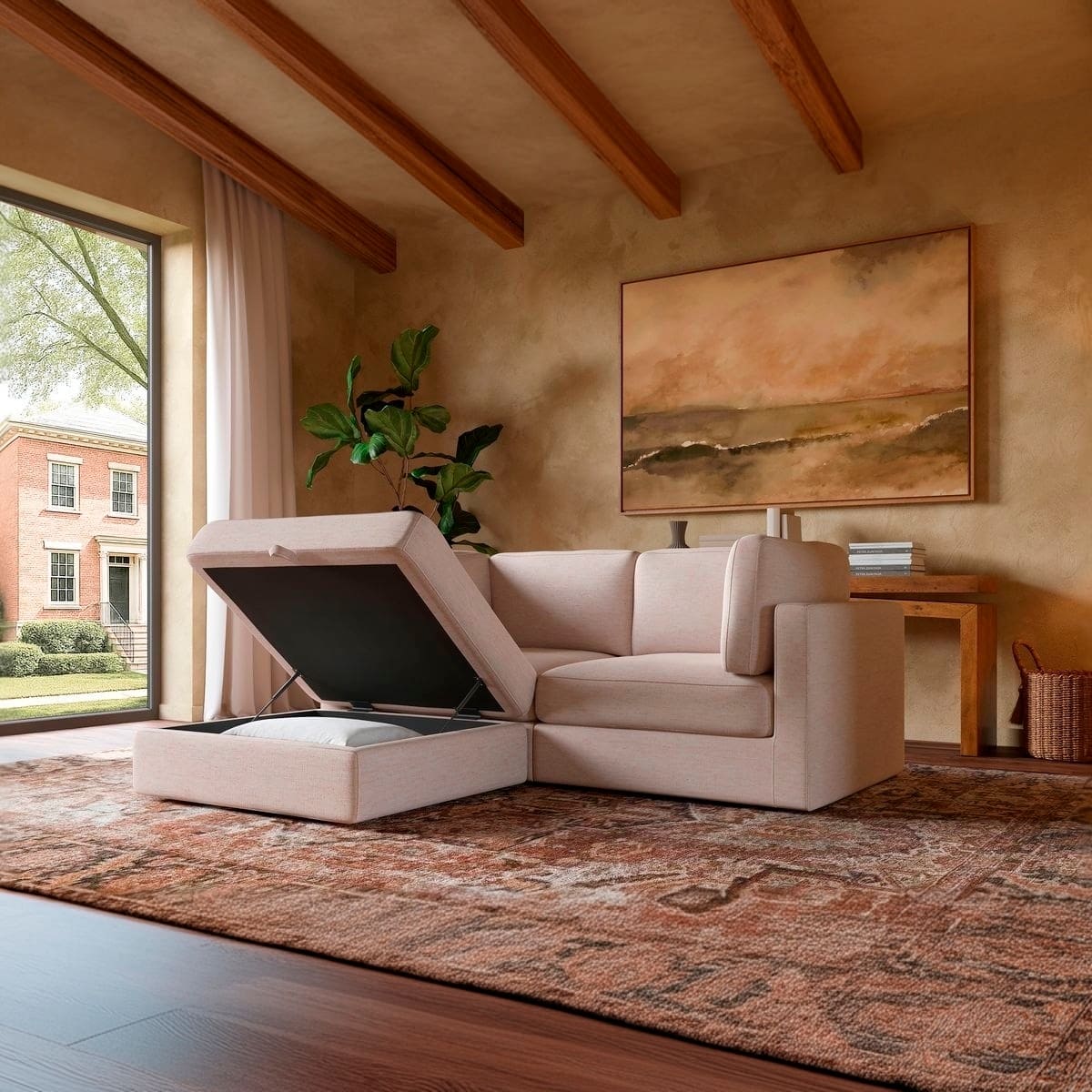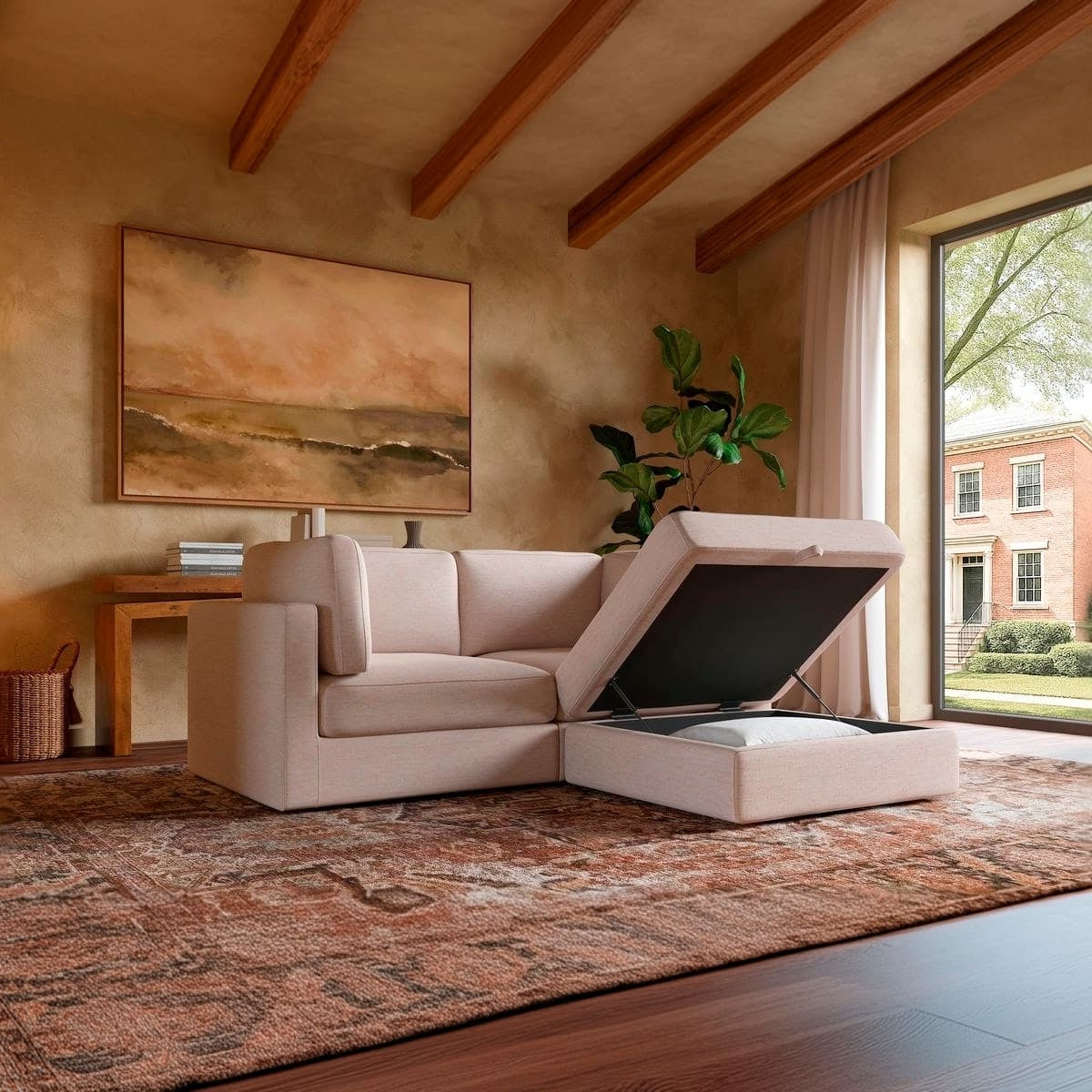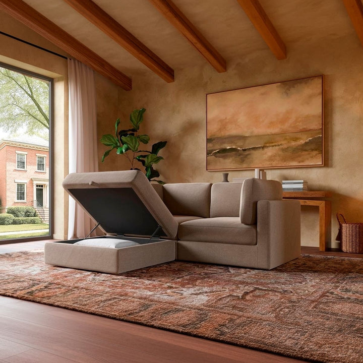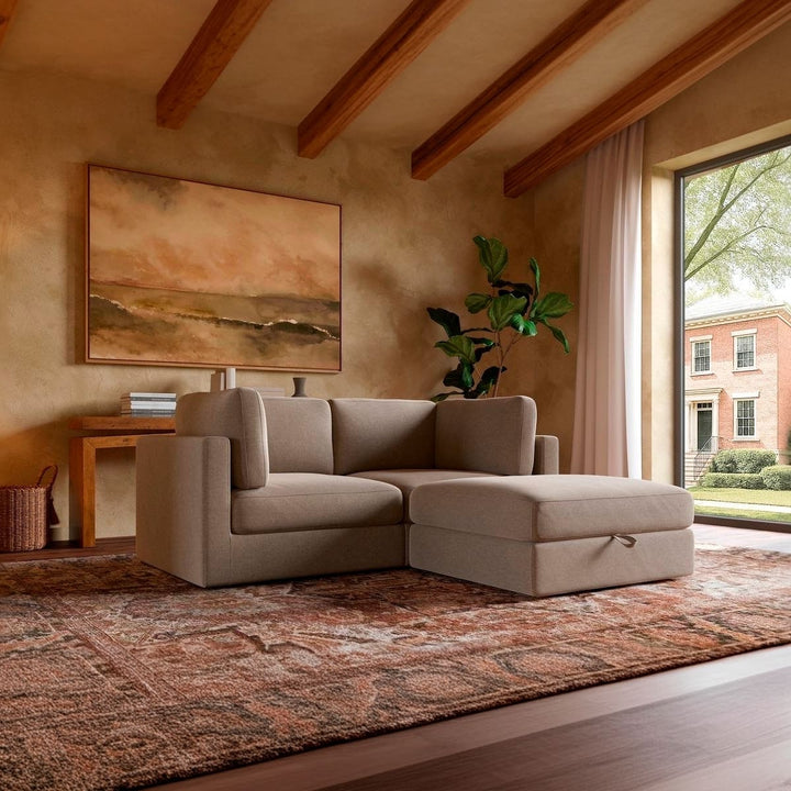 Paired with a spacious storage ottoman, the Haven keeps your space clutter-free—perfect for stashing throws, pillows, or anything you want out of sight but close at hand.