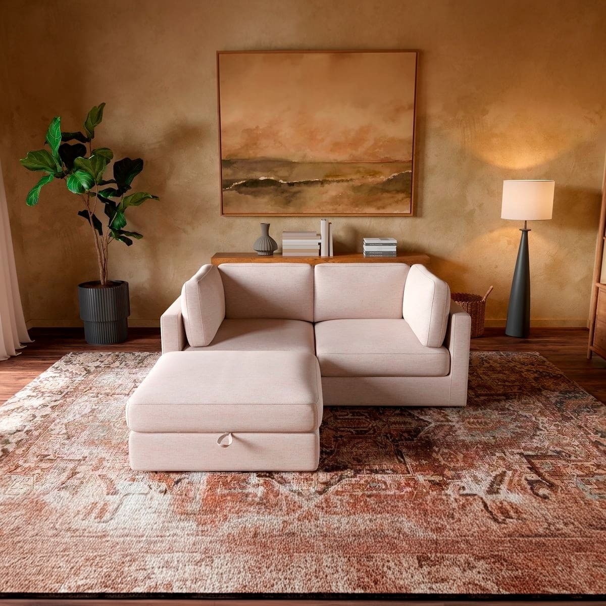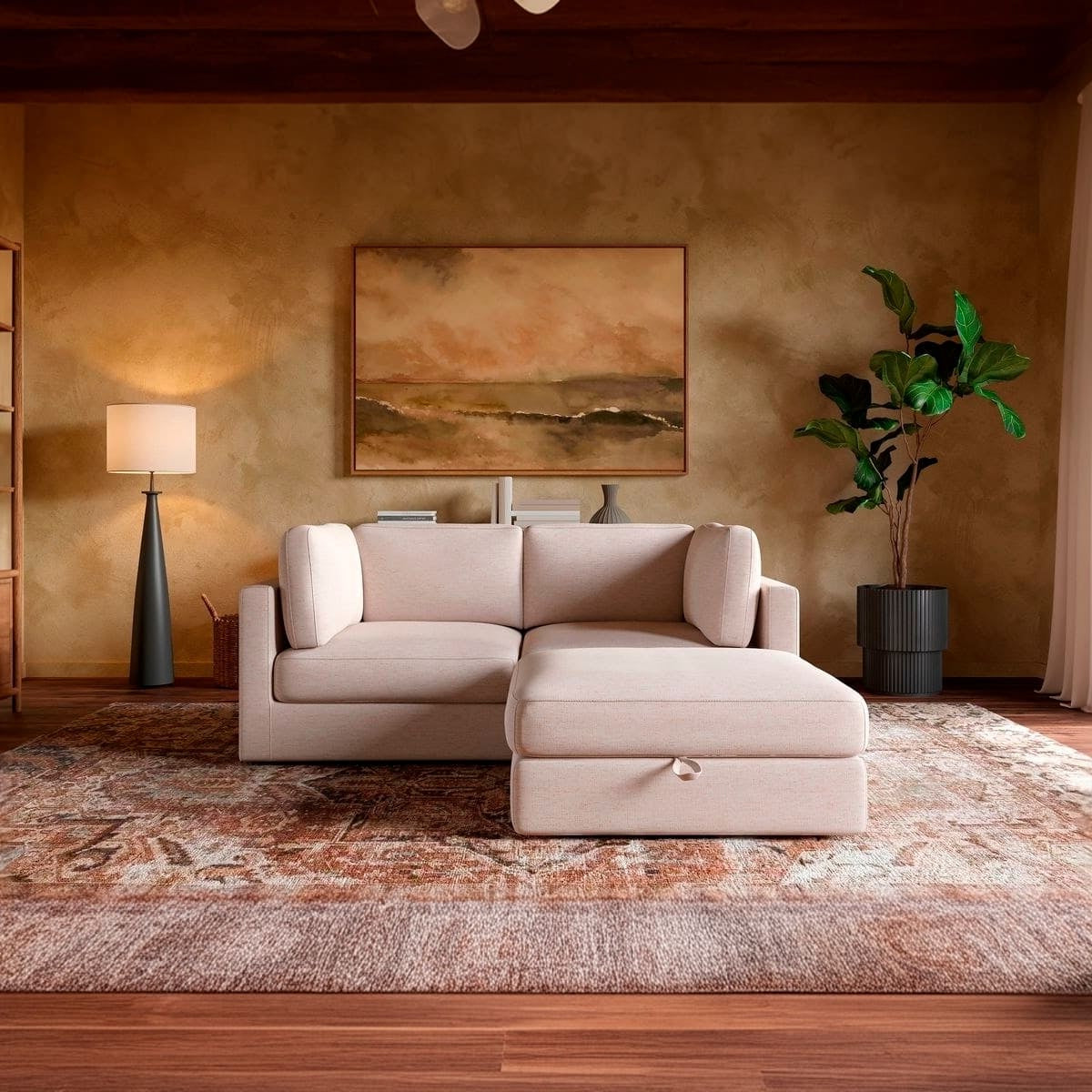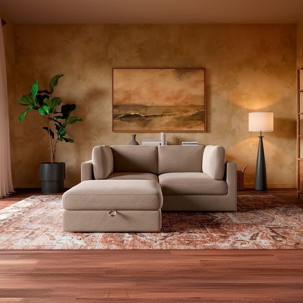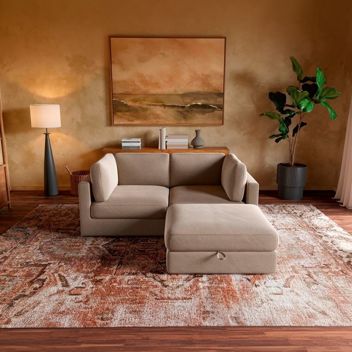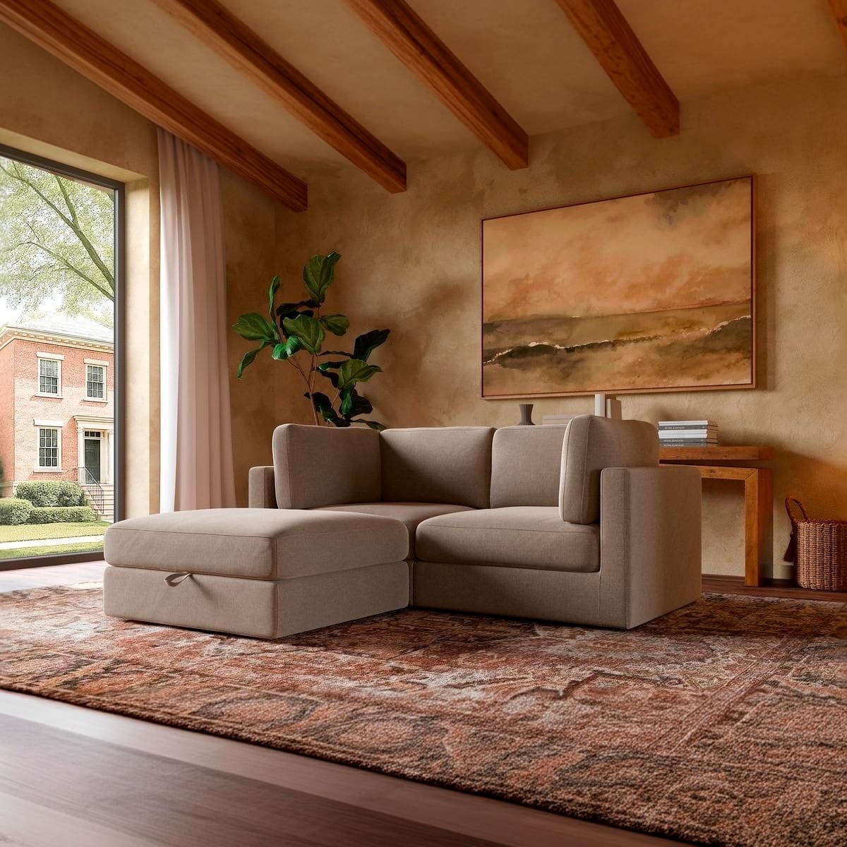 Paired with a spacious storage ottoman, the Haven keeps your space clutter-free—perfect for stashing throws, pillows, or anything you want out of sight but close at hand.