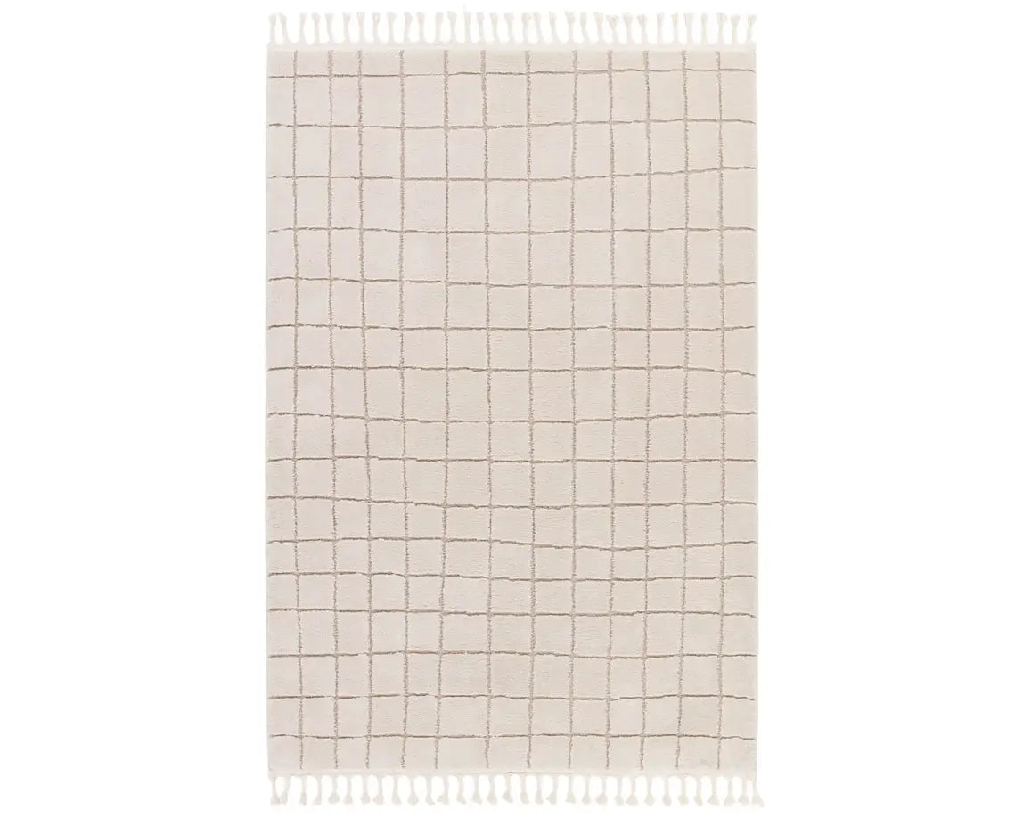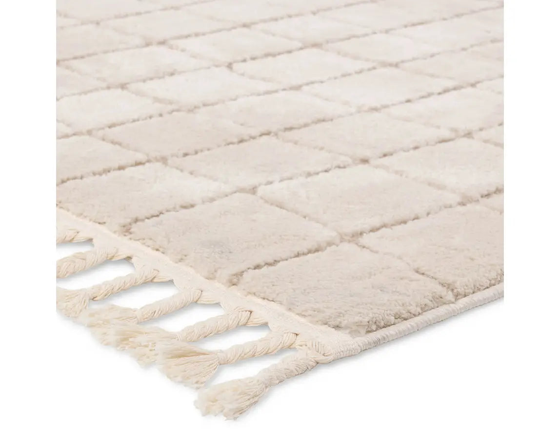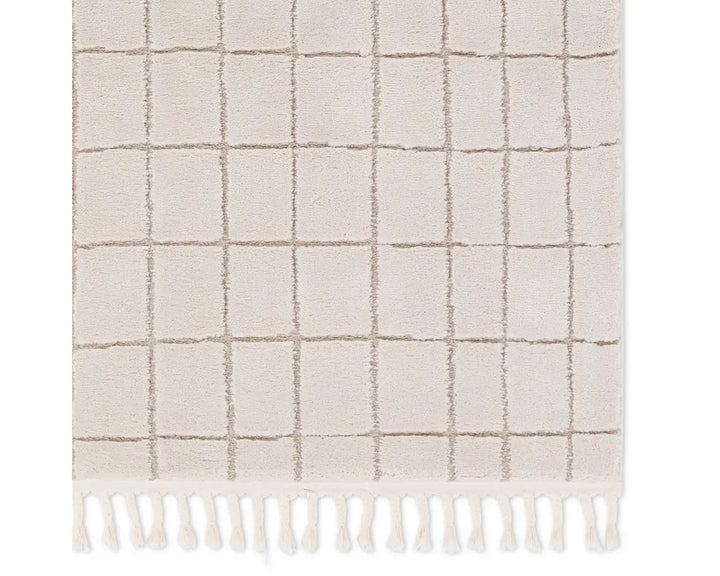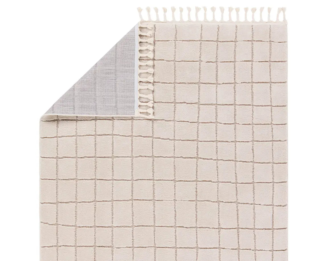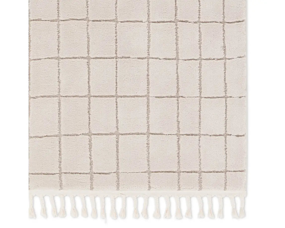 The Jaida collection is inspired by a coveted blend of modern Moroccan style and cozy, inviting vibes. These rugs showcase an incredibly soft hand, with a touch high-low detail mixed into the pattern, and a shed-free construction of polyester and polypropylene. The braided, cream fringe paired with a cream and beige, geometric pattern of the Nicia rug provides visual texture and global appeal. This plush area rug thrives in high traffic areas of the home such as living rooms, foyers, halls, and sunrooms.