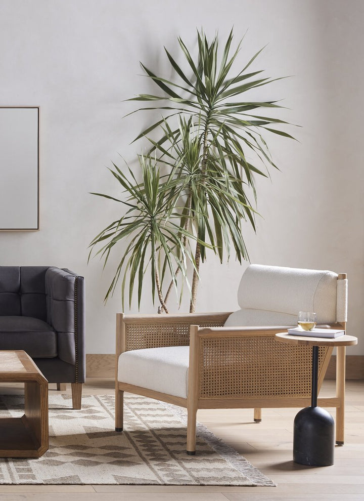 Craft a Parisian vibe with French-inspired seating. With a soft, comfortable texture and light cream hue, high performance-upholstered seating is perfectly positioned for comfort, with ash framing and woven sides of natural cane. Performance fabrics are specially created to withstand spills, stains, high traffic and wear, ensuring long-term comfort and unmatched durability.