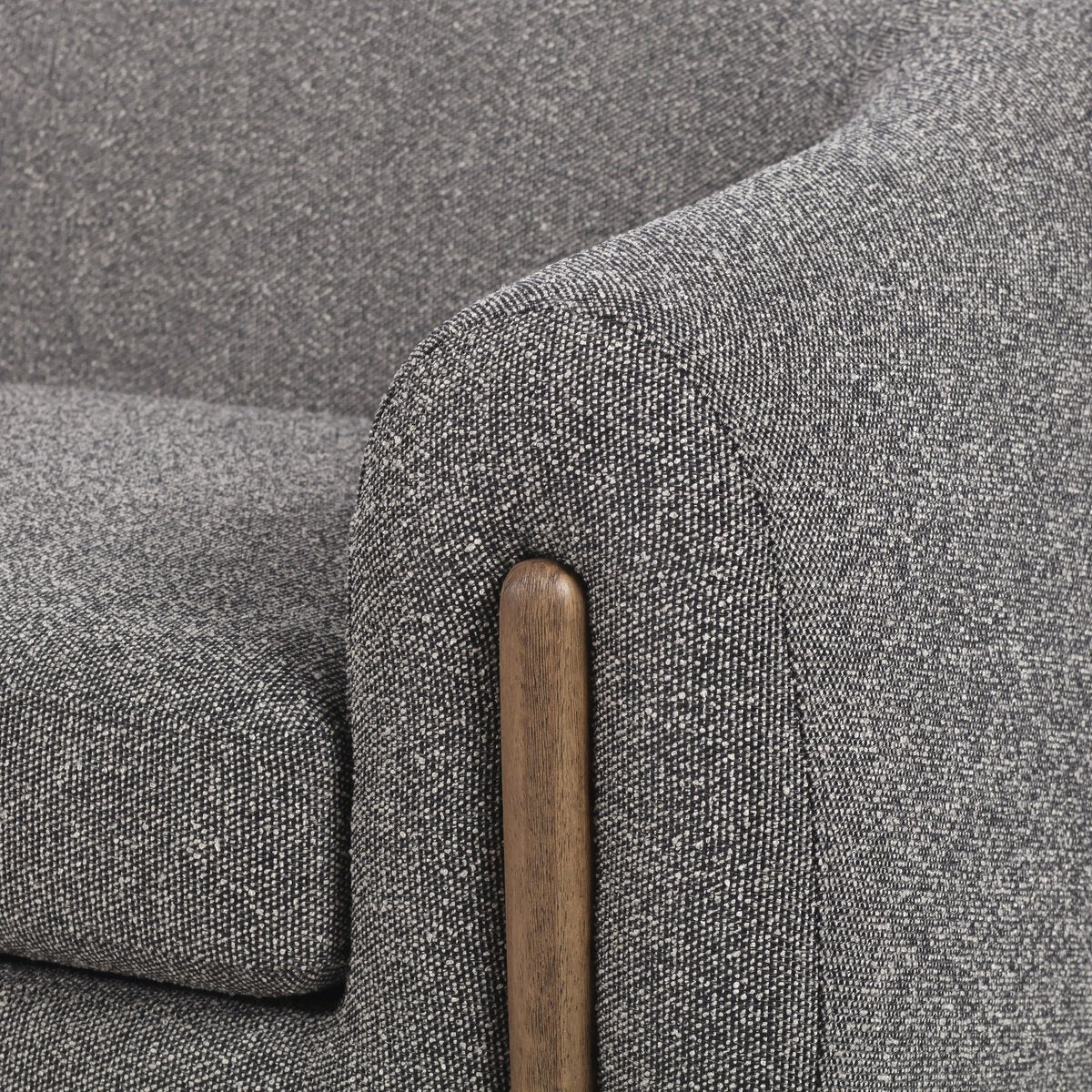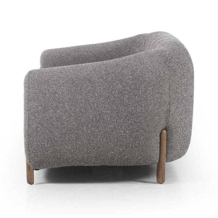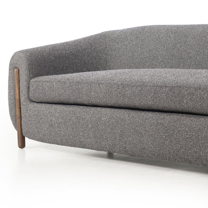 A fresh, elongated take on the traditional tub chair, with exaggerated depth for drama and comfort. Solid parawood legs intersect ebony upholstery on this plush sofa. Performance fabrics are specially created to withstand spills, stains, high traffic and wear, ensuring long-term comfort and unmatched durability.