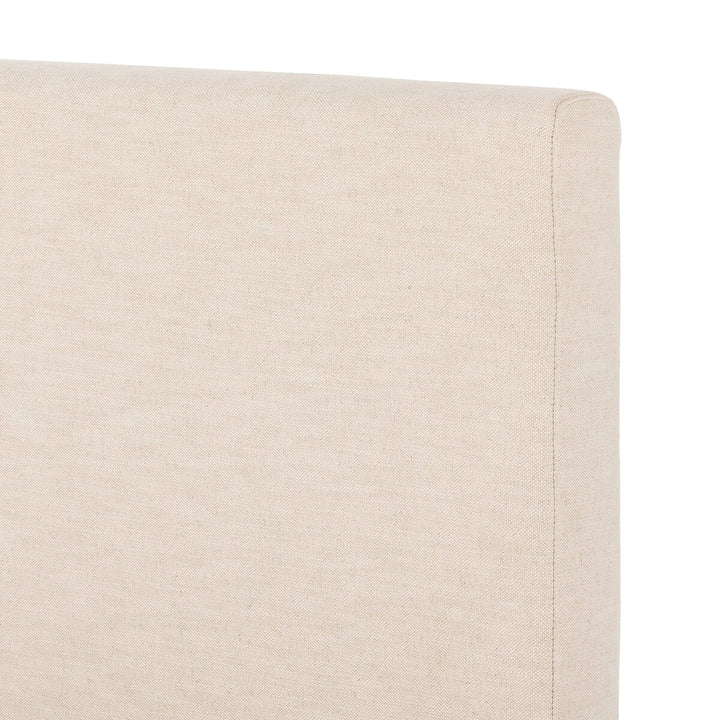 Low profile luxury. Modern Italian styling is both substantial and plush with clean lines all around. Fully upholstered in a textural cotton/linen blend with extra cushioning on the footboard and side rails.