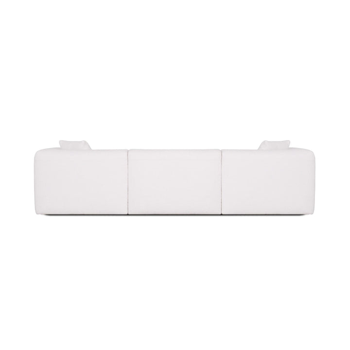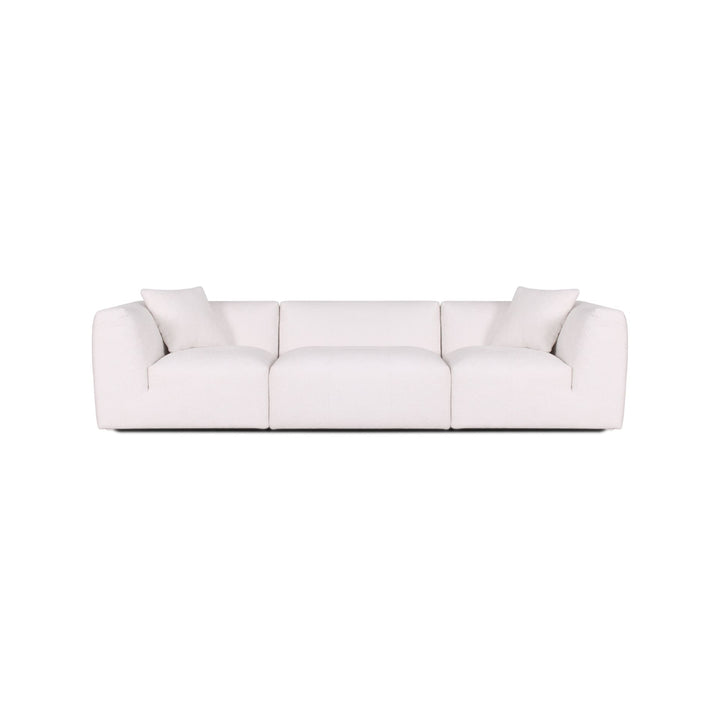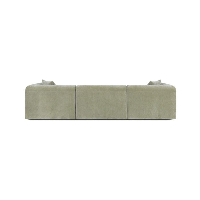 The Moda 3-pc Modular Sofa is available in three beautiful colorways: Cloud Optical (off-white), Present Marshmallow (soft neutral), and Mistique Fern (sophisticated green). Each color is designed to complement contemporary and transitional interiors while offering flexibility in coordinating with your existing décor.