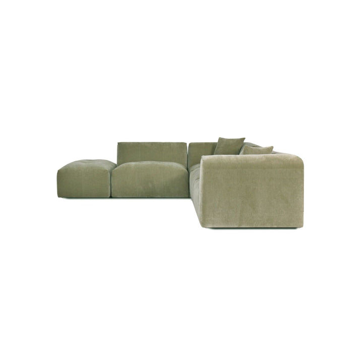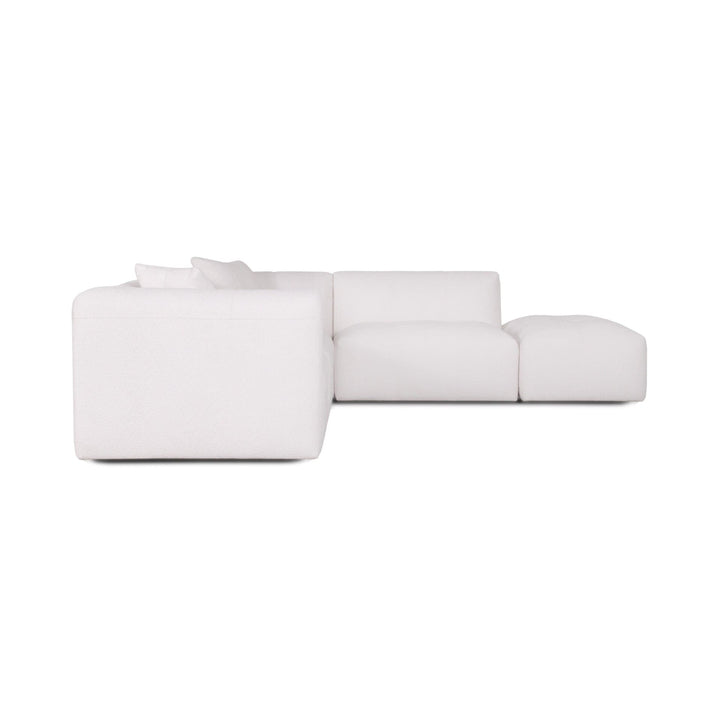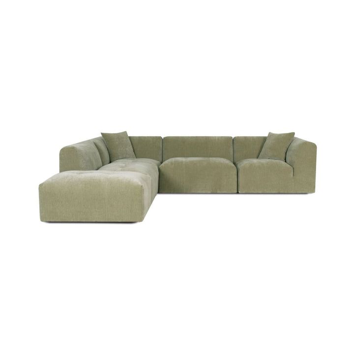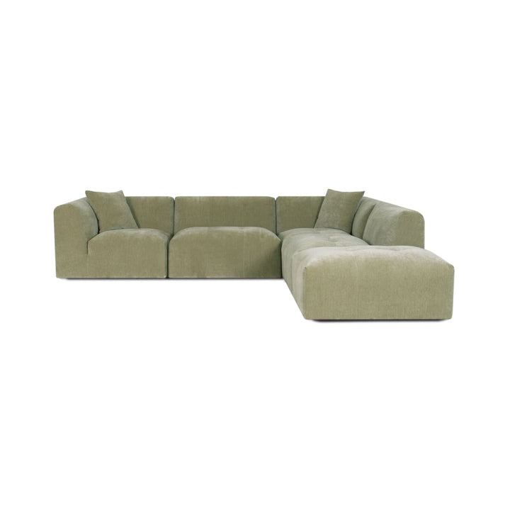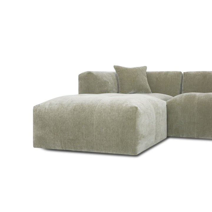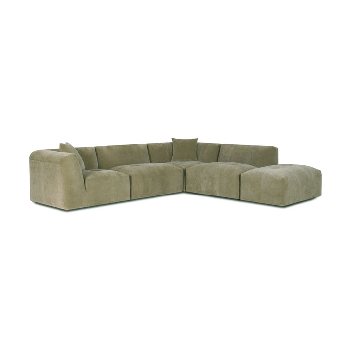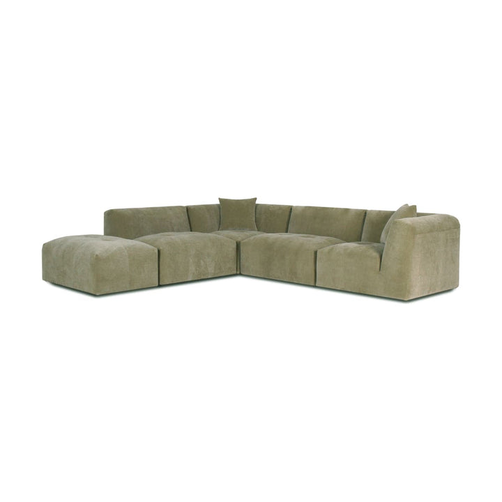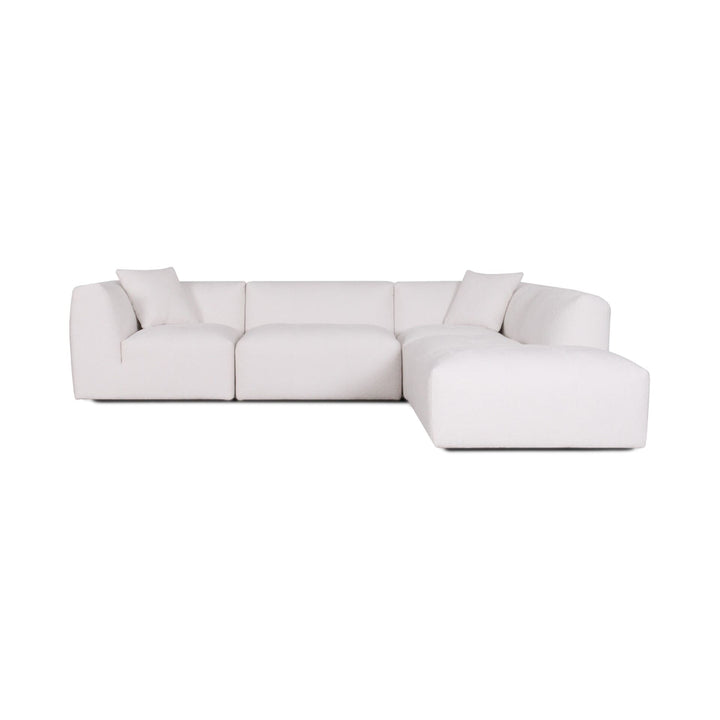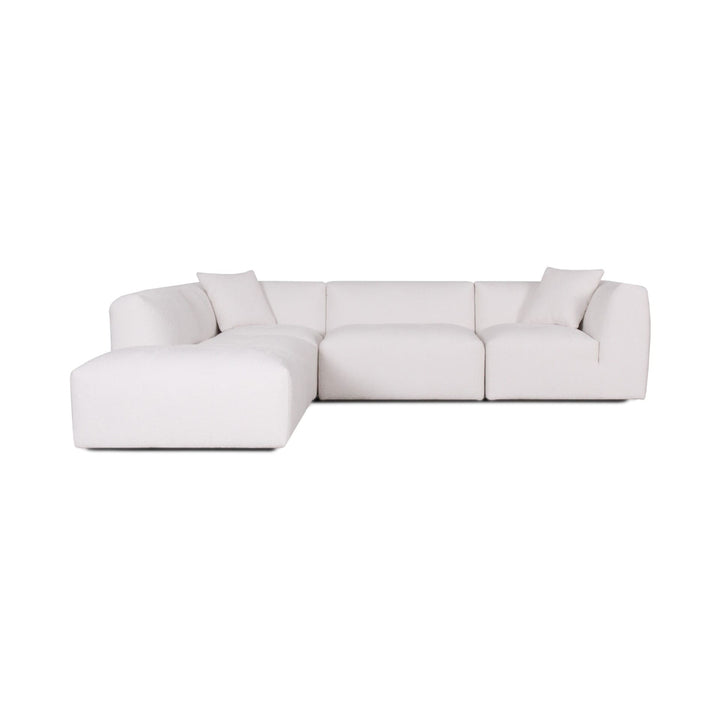 The Moda 4-pc Modular Sofa includes four coordinated pieces: a chaise lounge section, seating sections, and an ottoman. The exact configuration of pieces depends on whether you select the left or right chaise option. All pieces work together to create a complete, comfortable seating system.