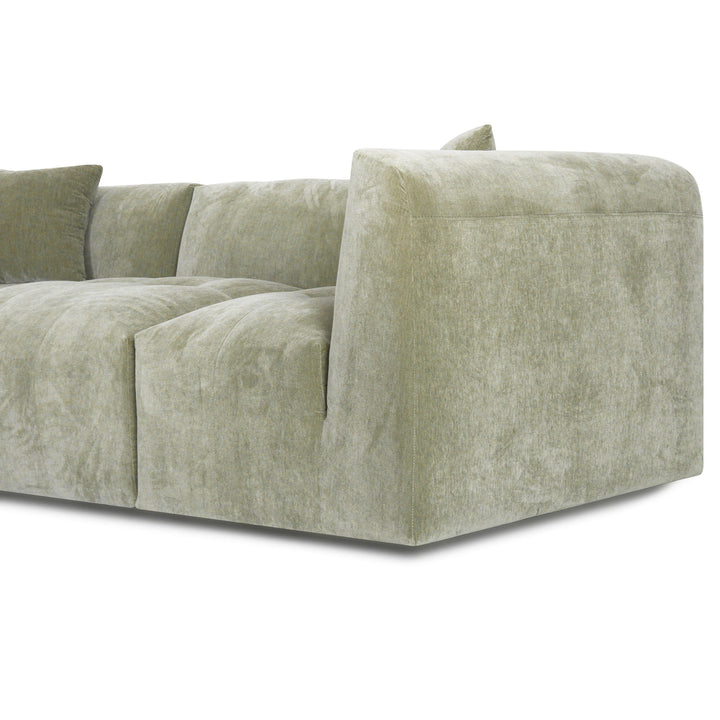 The Moda 4-pc Modular Sofa is constructed with a durable hardwood frame and reinforced zigzag spring system designed to support substantial weight capacity. Each modular piece is engineered to accommodate typical residential use. For specific weight capacity questions, our customer service team is available to provide detailed information.