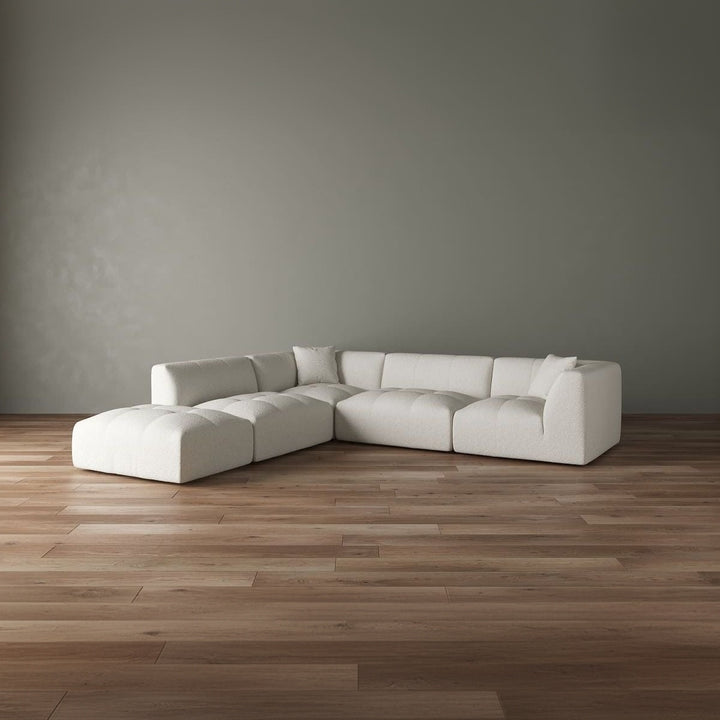 Yes, the modular design allows flexibility in arranging the 4 pieces. While the chaise configuration (left or right) is determined at purchase, the individual components can be repositioned within that configuration. This flexibility makes it ideal for both small apartments and larger living spaces.