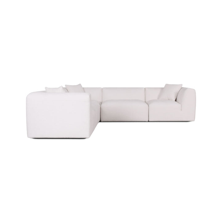 The Moda 5-pc Modular Sofa measures 122"W × 122"D × 29.5"H when configured as shown. These generous dimensions provide ample seating space. Since the pieces are modular, you can adjust the overall footprint by rearranging or removing individual components to fit your specific room layout.