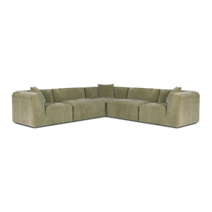 The Moda 5-pc Modular Sofa includes five coordinated pieces that form a complete seating system. The exact configuration of pieces may vary, but the set is designed to work together as a cohesive unit. Refer to your product documentation for specific details about which pieces are included in your purchase.
