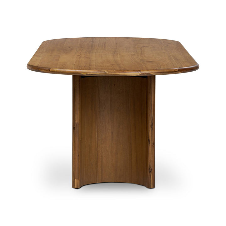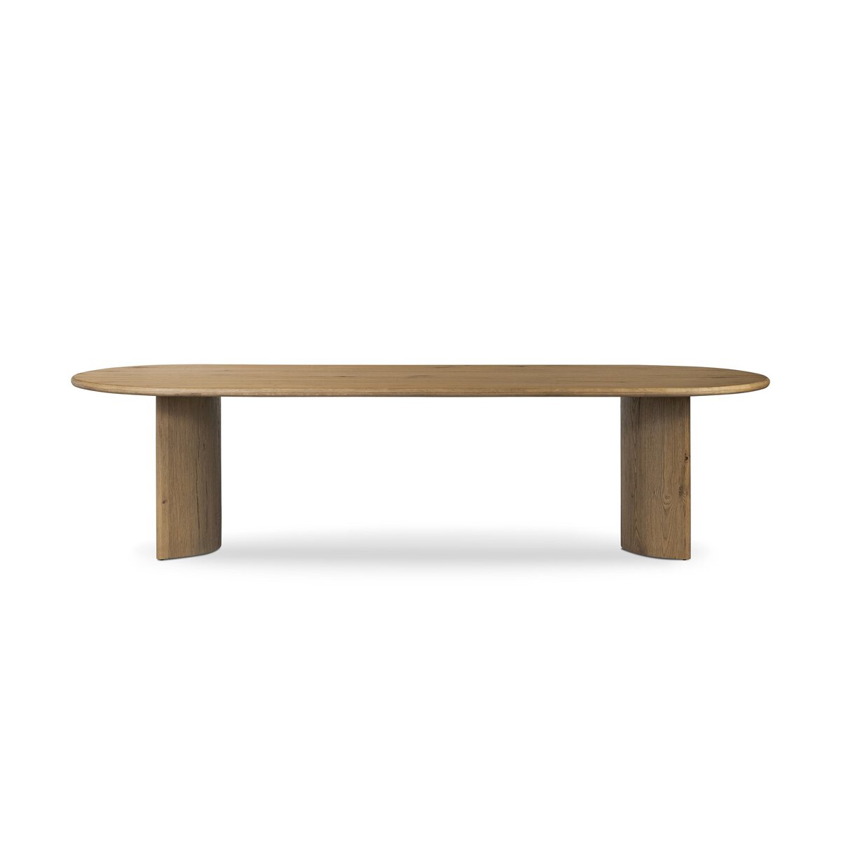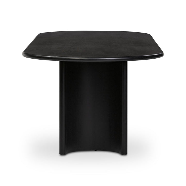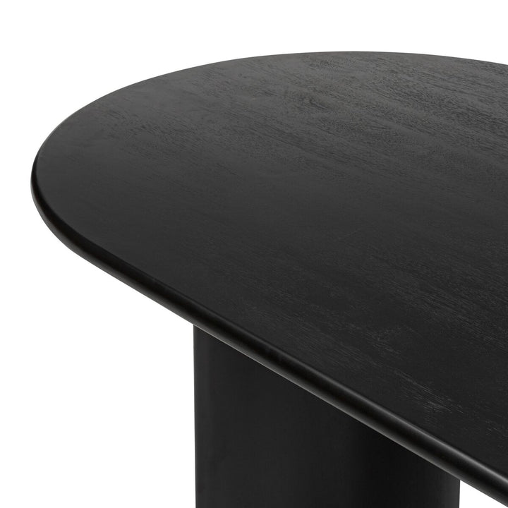 A study in shape. Forms crescent-shaped legs and sprawling oval tabletop, bringing organic presence to the dining room.