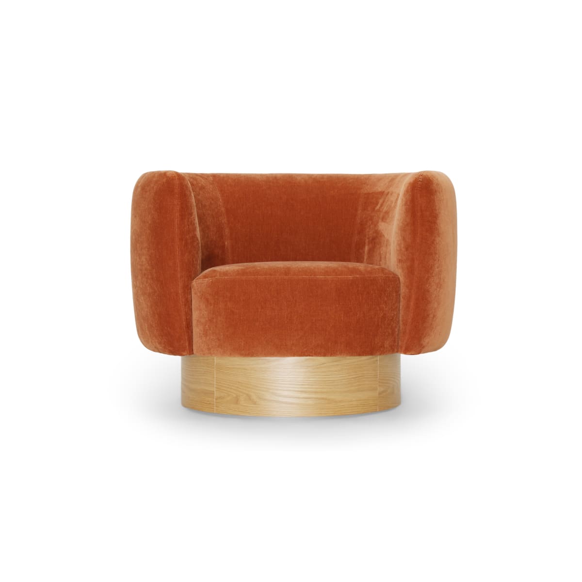Elevate your living space with the Rumi Swivel Chair, where comfort and style seamlessly blend. Designed with a contemporary silhouette, this chair offers a 360-degree swivel, perfect for any room. Upholstered in your choice of premium fabrics, the Rumi provides plush cushioning and ergonomic support, making it the ideal spot for relaxation or conversation. Whether you’re looking to add a statement piece to your living room or a cozy seat to your reading nook, the Rumi Swivel Chair is a versatile and chic addition to your home decor with oak base veener. Sizes: