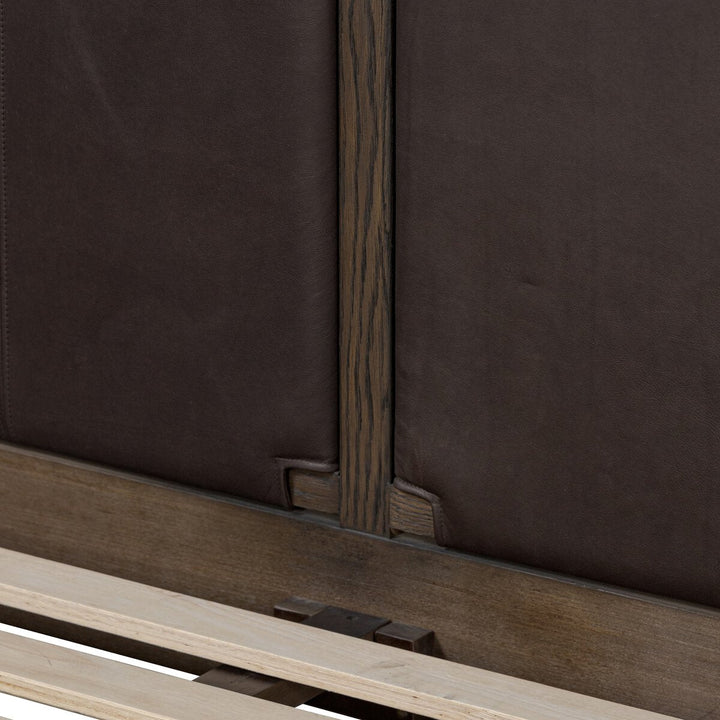 Solid ash framing and heirloom leather panel details craft this safari-inspired bed frame. Sourced from one of the oldest family-owned tanneries in Italy’s Bassano del Grappa, our heirloom leather covering is salvaged and processed from upcycled hides featuring an abundance of natural markings, scars and color variations. The result? Beautifully supple, buttery soft hides with an unmatched depth of color and richness, and an authentic lived-in look.