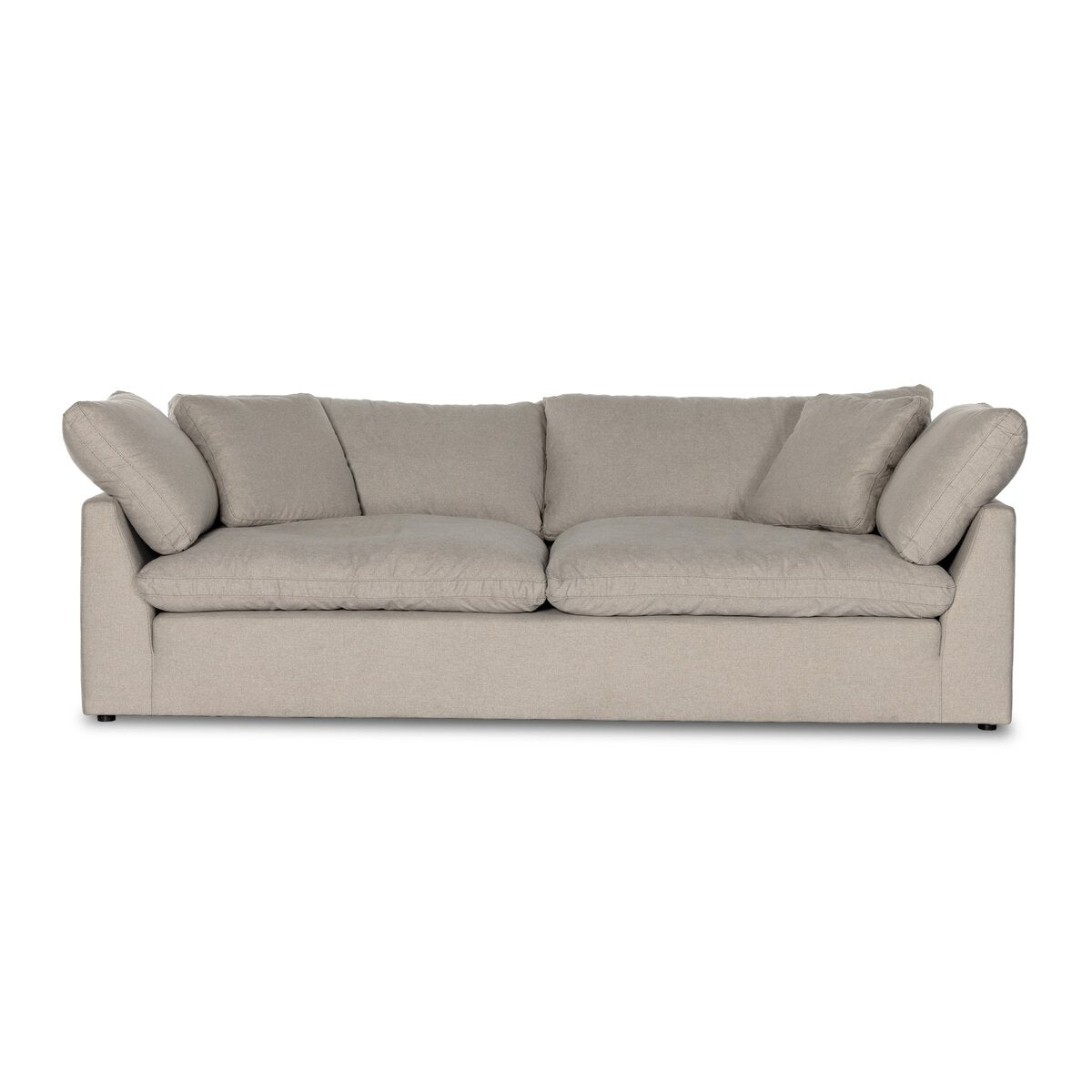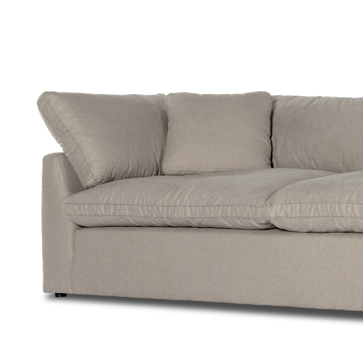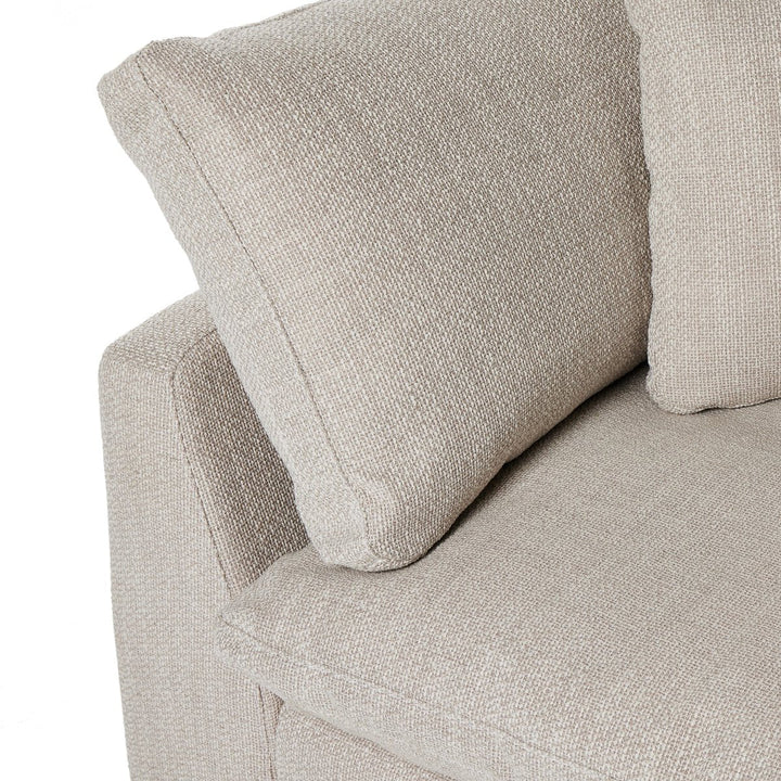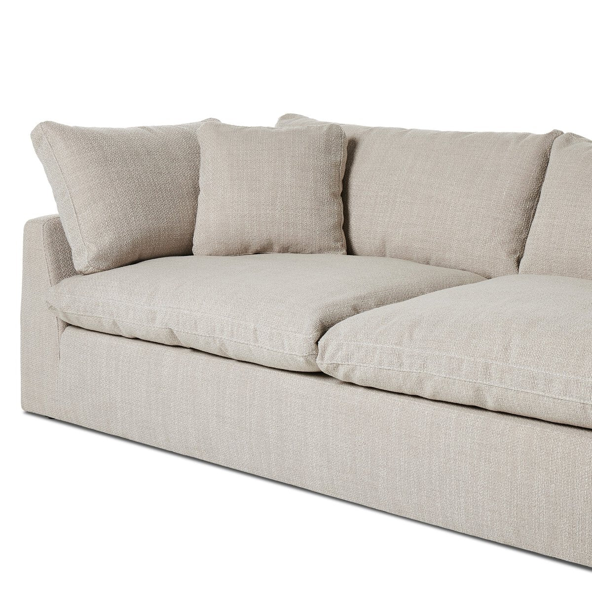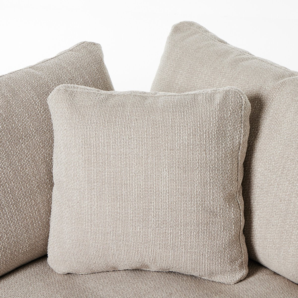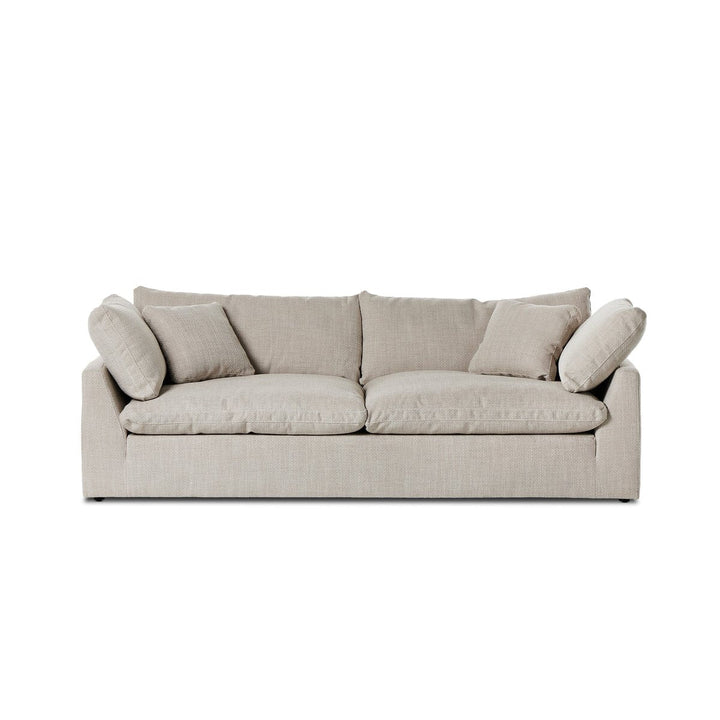 Feather-blend cushioning and high-performance basket-weave fabric make this plush while casual sofa an easy go-to in any sized space. Upholstered in an easy-care performance fabric made with neutral two-toned boucle-spun yarns. Fluff cushions regularly to maintain appearance, and steam fabric for a more tailored look. Performance fabrics are specially created to withstand spills, stains, high traffic and wear, ensuring long-term comfort and unmatched durability.
