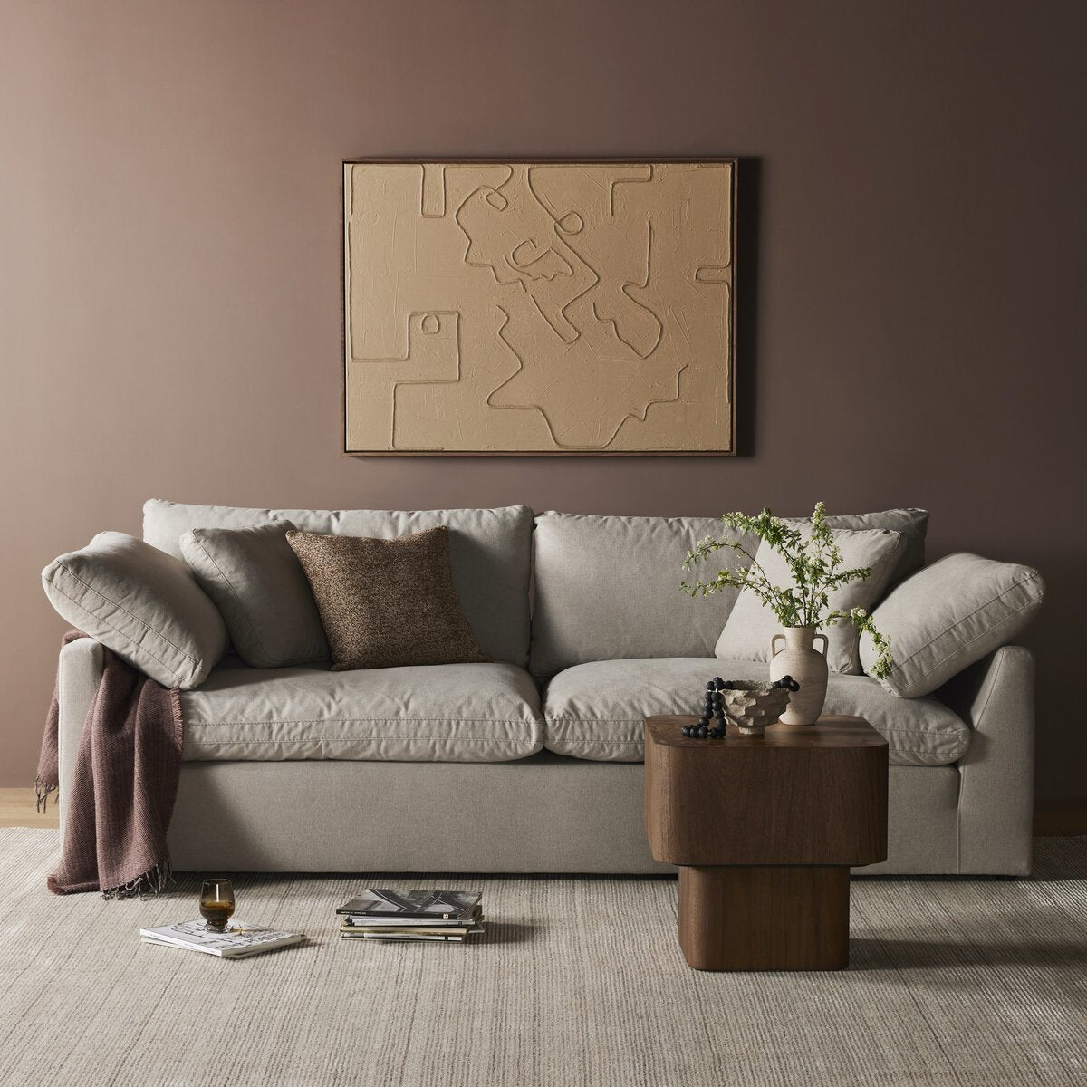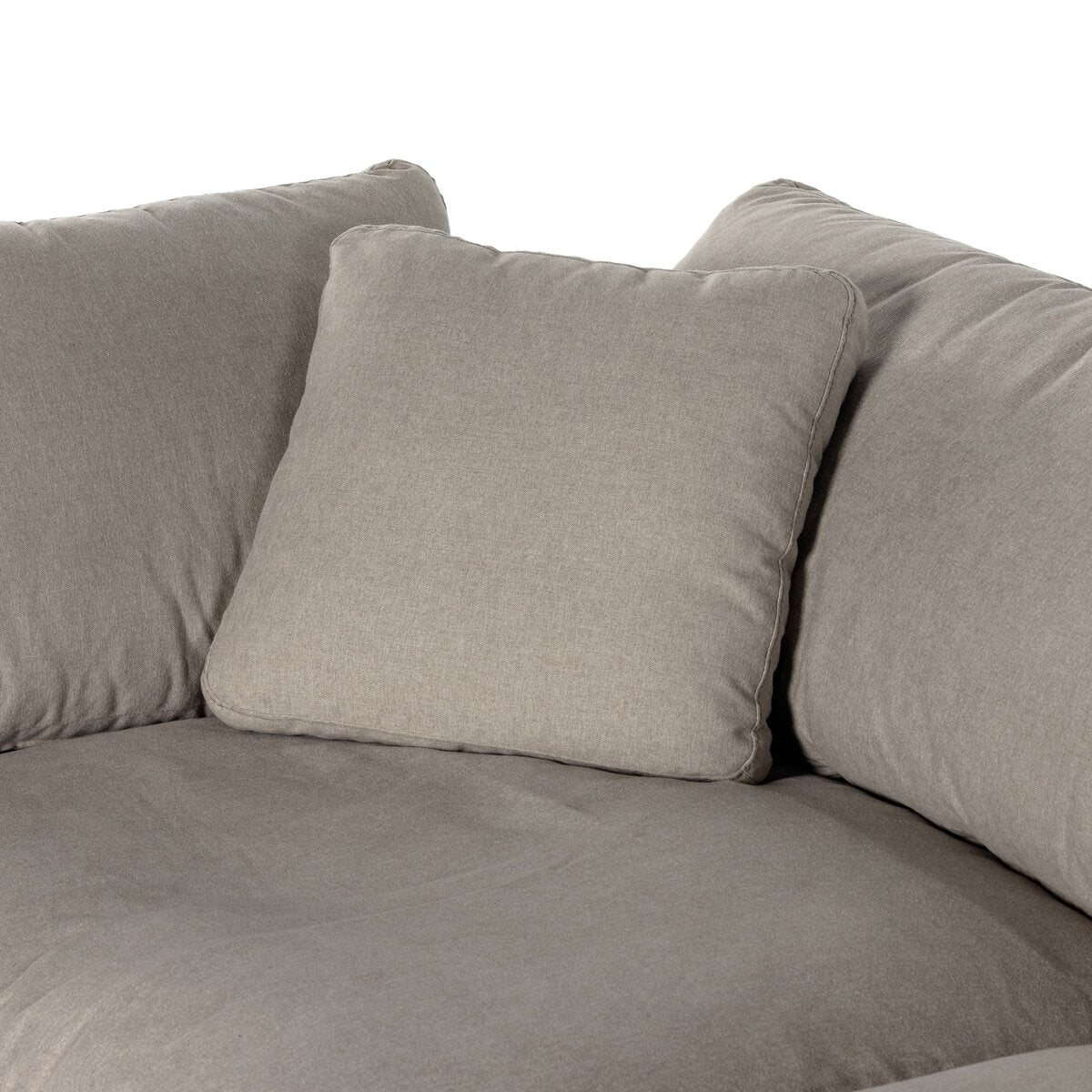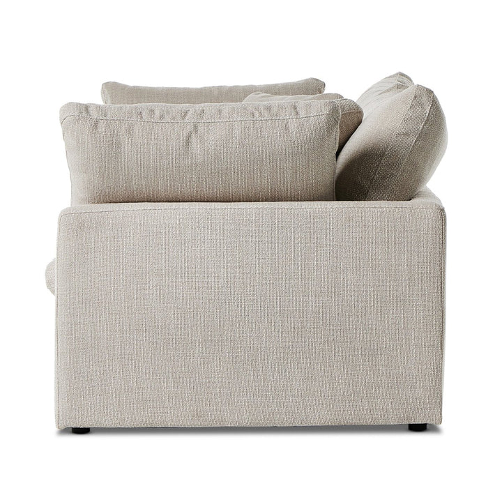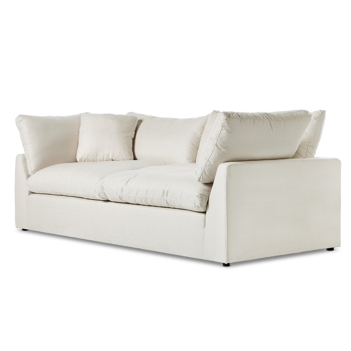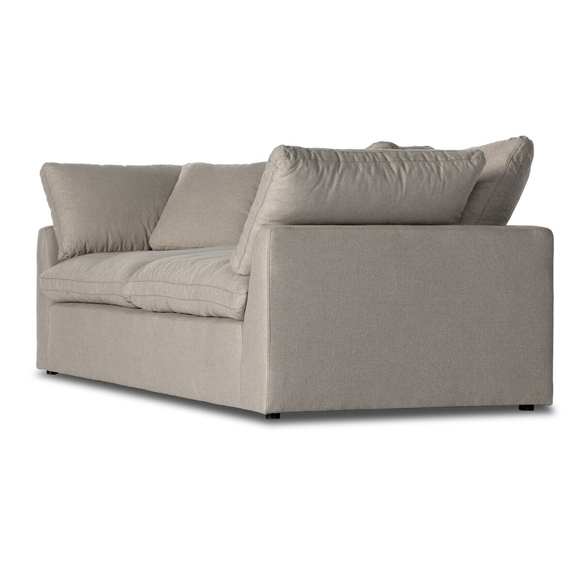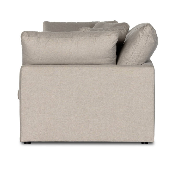 Feather-blend cushioning and high-performance basket-weave fabric make this plush while casual sofa an easy go-to in any sized space. Upholstered in an easy-care performance fabric made with neutral two-toned boucle-spun yarns. Fluff cushions regularly to maintain appearance, and steam fabric for a more tailored look. Performance fabrics are specially created to withstand spills, stains, high traffic and wear, ensuring long-term comfort and unmatched durability.